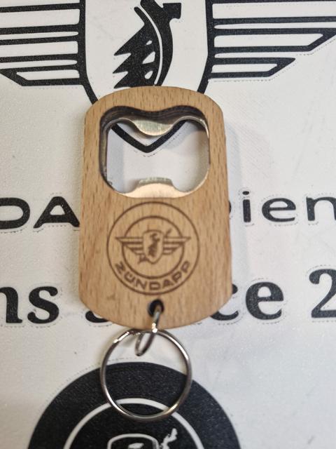 Schlüsselanhänger Buche / Edelstahl Flaschenöffner mit gelaserten Emblem beidseitige Lasergravur